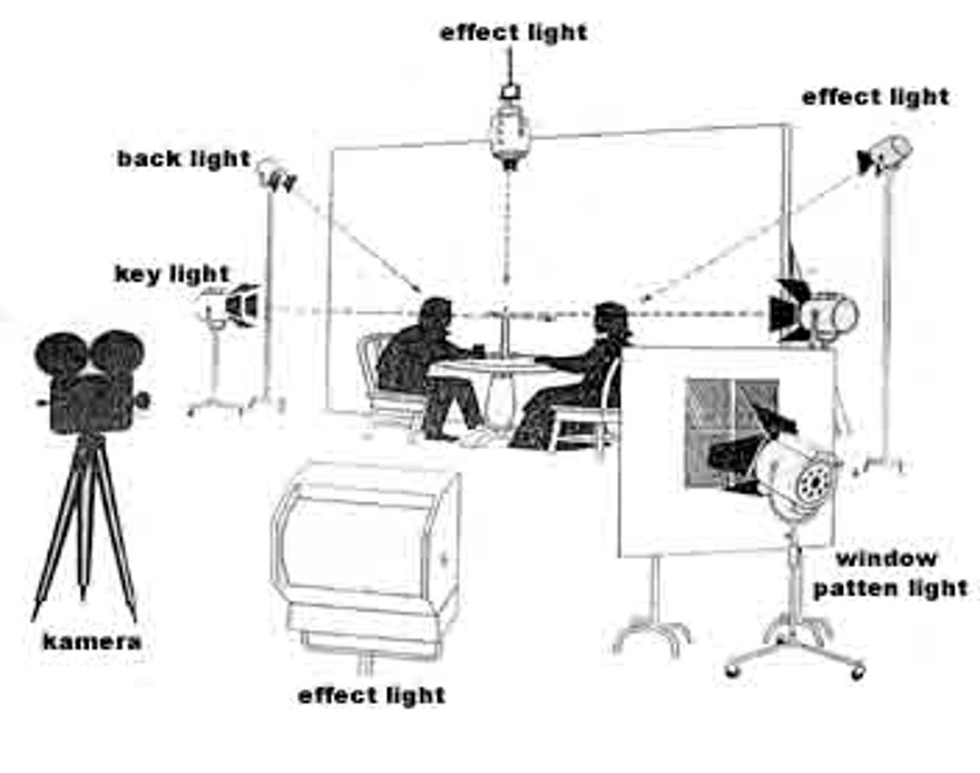 - Lighting: Tungsten, HMI, LED. Perhatikan panas & daya listrik.